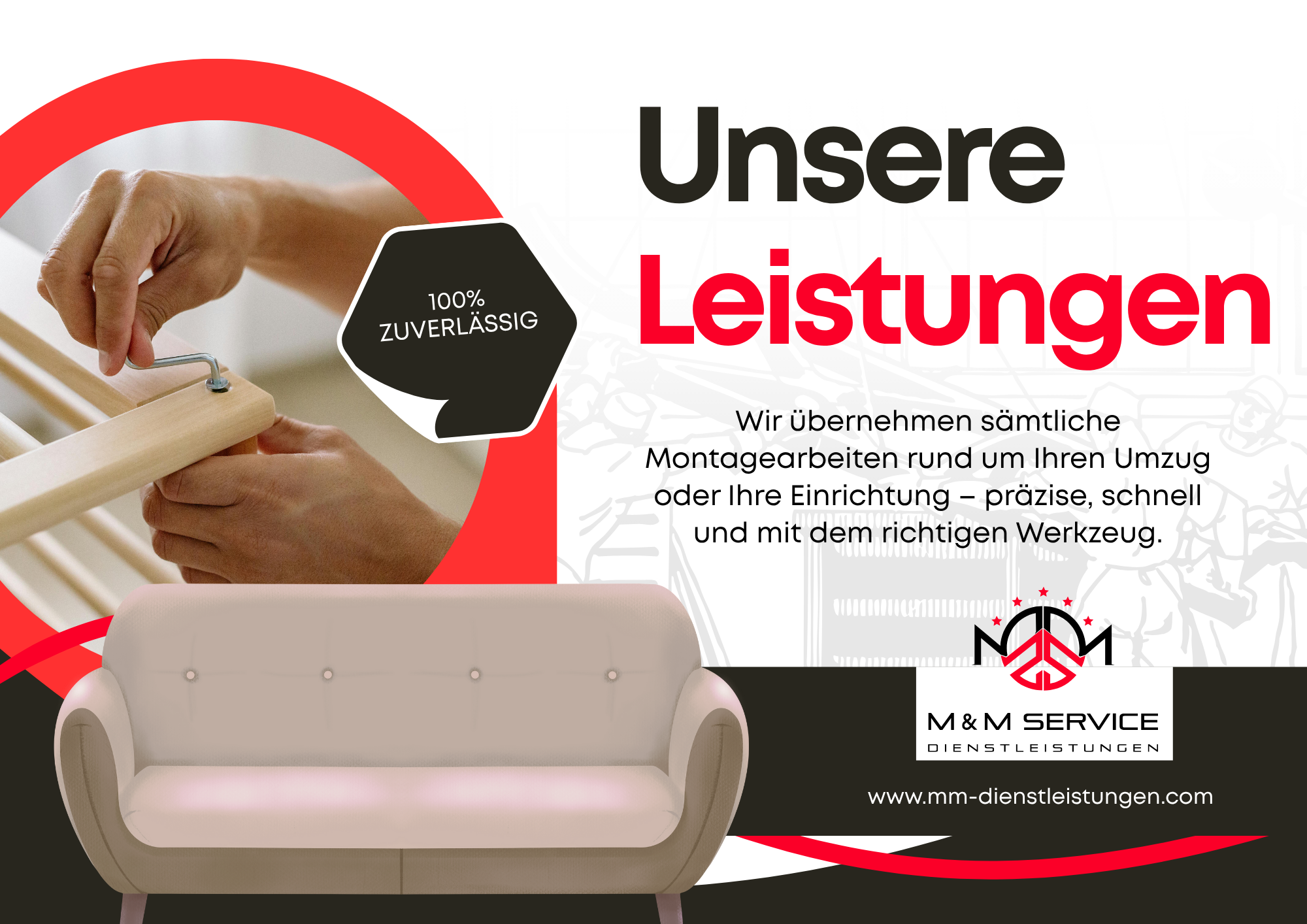 Ob Umzug, Renovierung oder Neuanschaffung: Wir kümmern uns darum, dass Ihre Möbel, Küchen und Geräte professionell montiert werden. Unser erfahrenes Team sorgt für den fachgerechten Auf- und Abbau – pünktlich, sicher und ohne Stress für Sie.